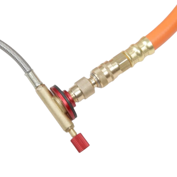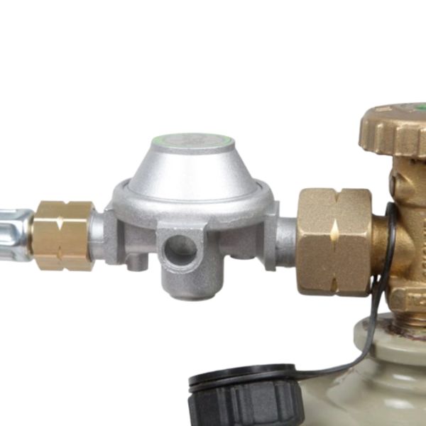 Attention : les régulateurs de pression standard de 30 mbar et 50 mbar ne fonctionneront PAS avec le gril SKOTTI !!! Le tuyau de raccordement de la bouteille de gaz ne fonctionne PAS sur les prises extérieures du camping-car. La pression sur la prise extérieure n'est pas suffisante pour que le SKOTTI fonctionne. Connectez l'adaptateur directement au contrôleur rouge (voir photos).