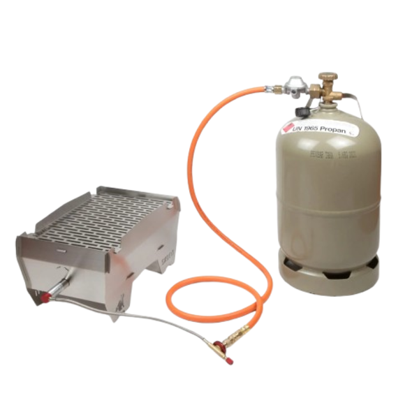 Wil je je SKOTTI grill aansluiten op een grote propaangasfles voor eindeloos grillen zonder steeds te hoeven bijvullen? Met de Skotti Gasadapter kun je moeiteloos een 5 kg of 11 kg propaangasfles koppelen aan je SKOTTI grill. Ideaal voor kampeerders, lange BBQ-sessies of iedereen die zorgeloos wil genieten van heerlijke gegrilde gerechten.